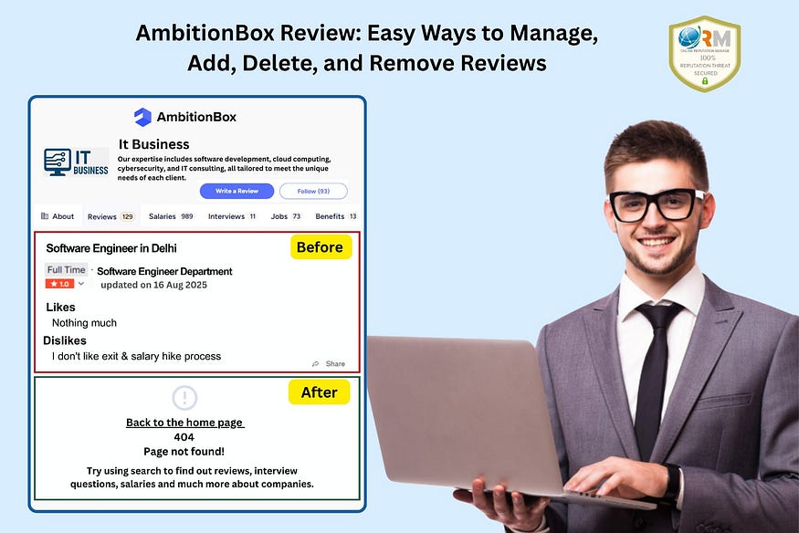 Professional Assistance: Managing removal requests or addressing problematic reviews can be challenging. OnlineReputationManage.com is a trusted online reputation management company that helps businesses Delete AmbitionBox Reviews ethically while maintaining transparency and credibility.